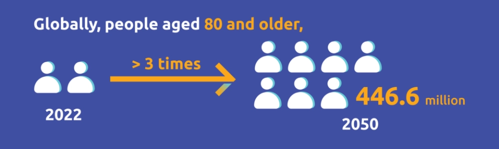 In 2018 the number of people aged 64 years and above surpassed the number of children under five years old for the first time in history, according to statistics from the United Nations. Meanwhile, the United States’ National Institute on Ageing expects that the global population of people aged 80 and older will more than triple from 126.5 million to 446.6 million between 2015 and 2050. In some Asian and Latin American countries, this cohort is expected to quadruple in size during the same period.