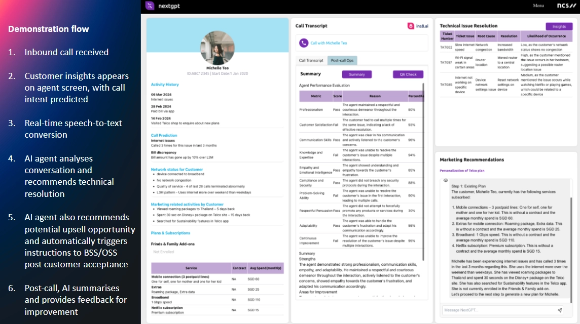The underlying technology products and services used to modernise this contact centre included AWS Bedrock cloud services, Anthropic’s Claude Instant LLM and NCS’ proprietary speech-to-text engine called Ins8.ai. With the successful implementation, the technology architecture and deployment roadmap now serve as a reference template for other similar contact centres globally.