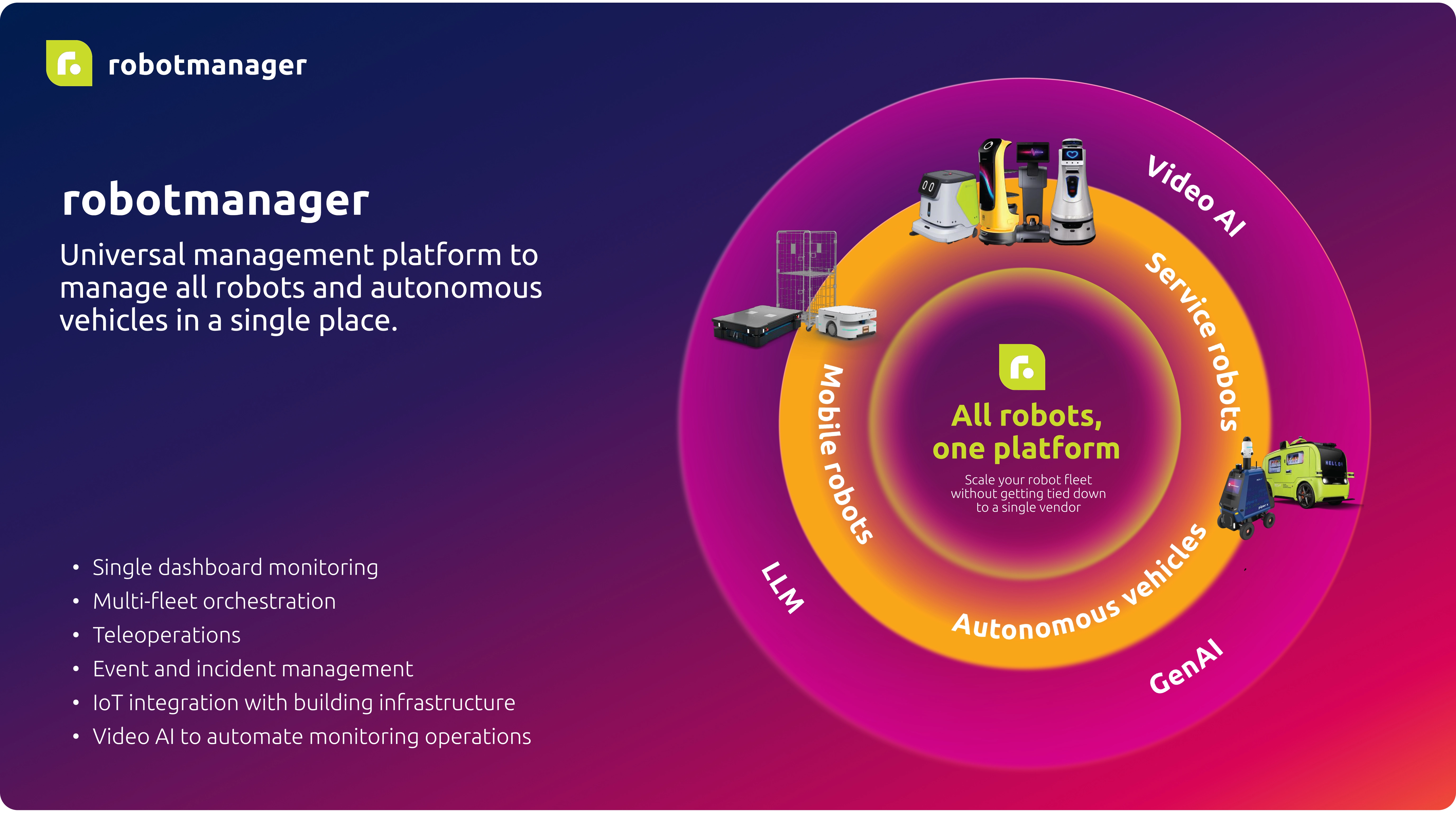 Unlike other solutions that only support one robot type, our robotics solution is robot-agnostic, giving you the flexibility to manage all your robots, from any vendor, in one place.
