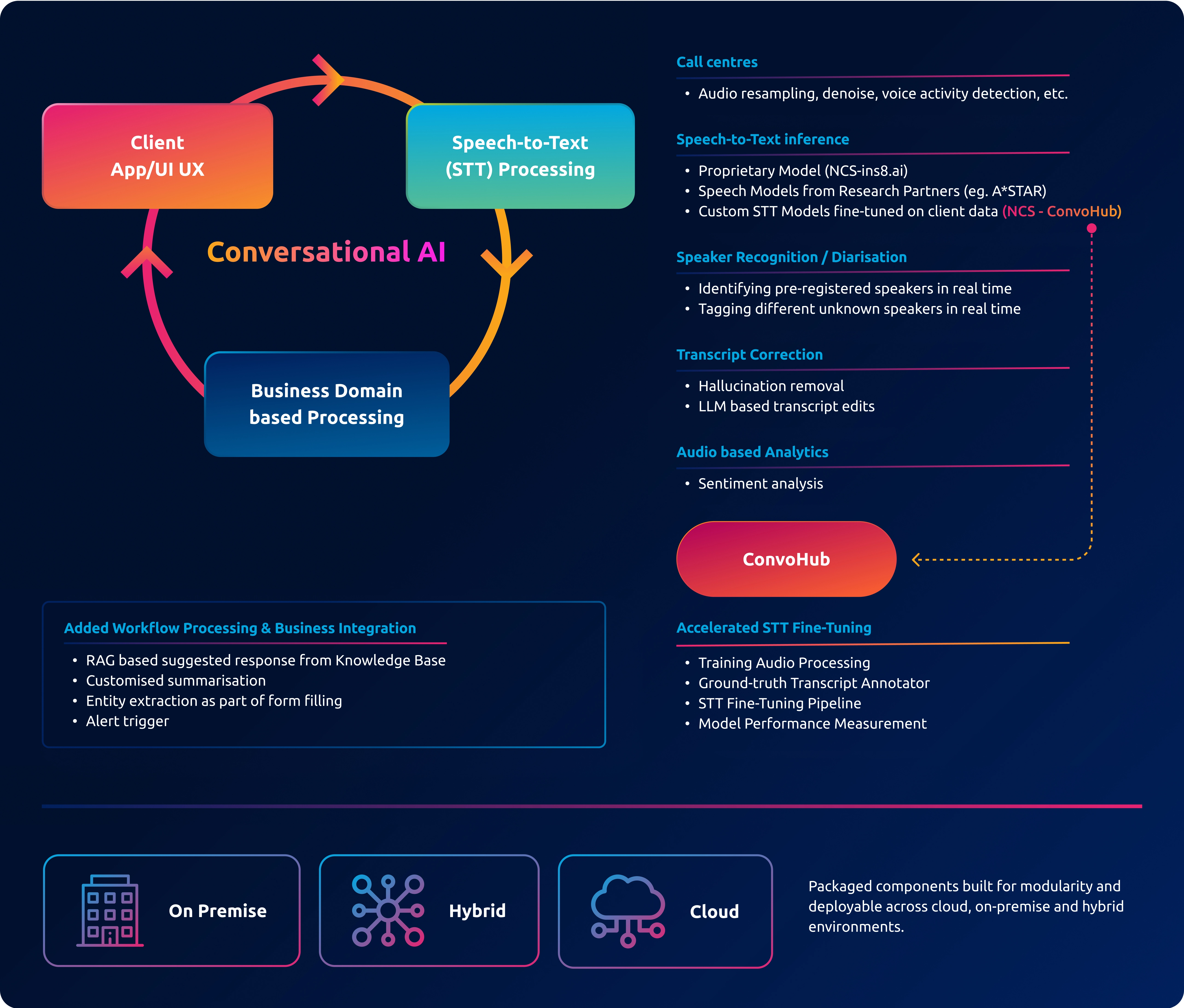 NCS Conversational AI components are modular and packaged to meet security, latency and data governance needs.