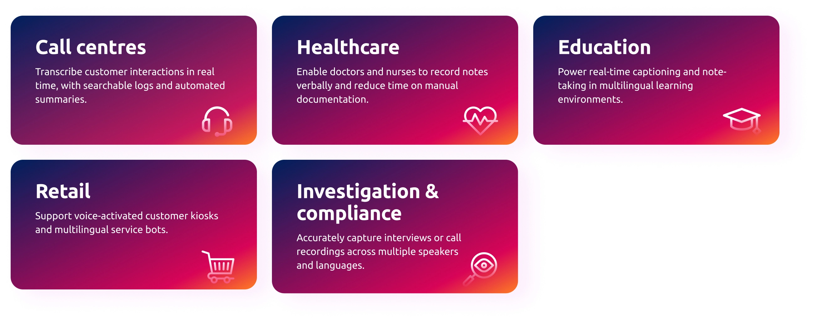 NCS deployed its proprietary speech-to-text engine specialising in the local Singlish accent at a 250-agent call centre in Singapore. The model was trained on actual call recordings and tuned for regional dialects and hybrid sentence structures.