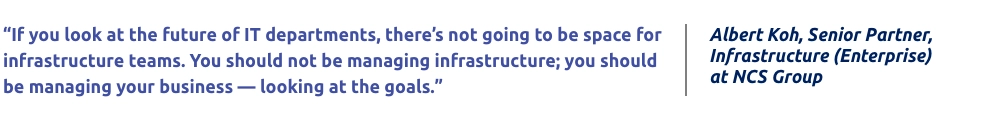 “I think infrastructure will become like how you consume power,” Albert Koh, Senior Partner, Infrastructure (Enterprise) at NCS Group, says, “if it works, nobody complains. Everything is done by the service provider.”