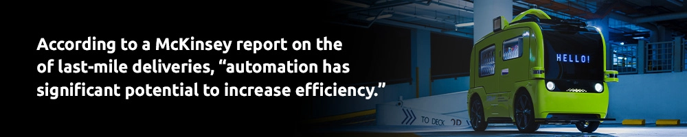 These technologies have the potential to unlock major benefits for cities, including reduced CO2 emissions and more efficient last-mile deliveries. Using drones to carry out airborne last-mile deliveries will reduce the need for diesel trucks, thereby cutting traffic congestion and pollution while slashing waiting times for customers from days to hours. According to a McKinsey report on the future of last-mile deliveries, “automation has significant potential to increase efficiency. Autonomous delivery vehicles (ADVs) are and will be the dominant technology in this regard, and they have the power to reshuffle the entire industry.” The report also noted that technological developments in the last-mile delivery ecosystem are occurring at a faster pace than expected.