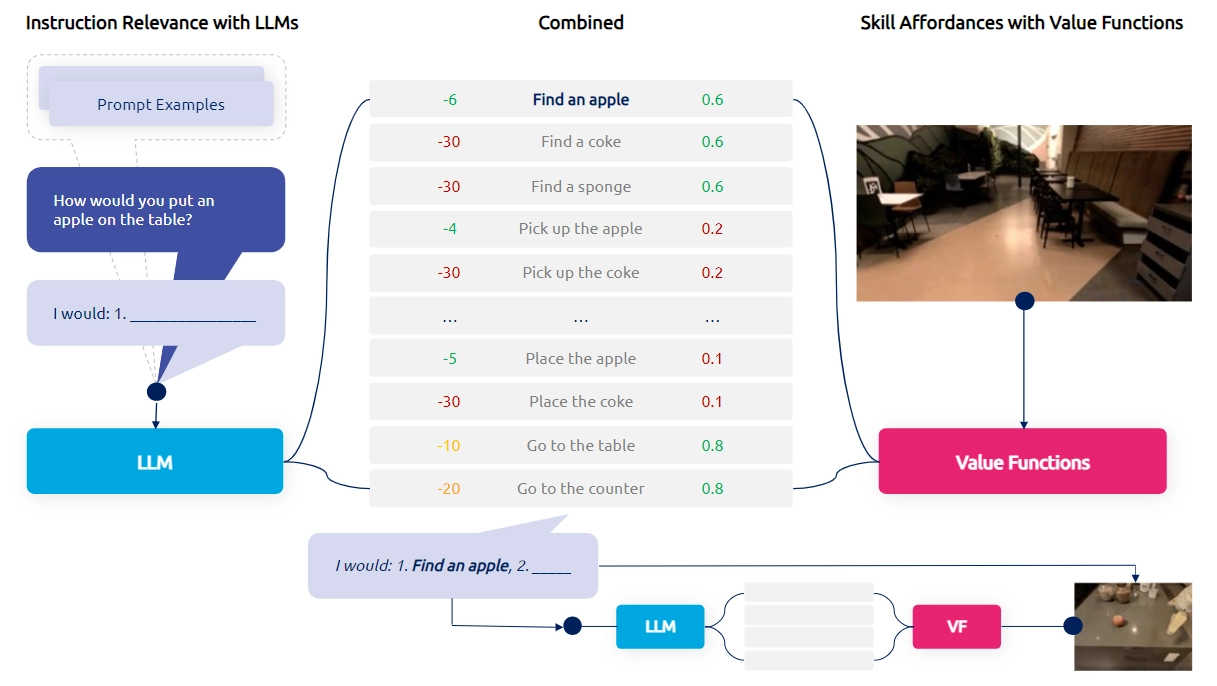 Figure 2. Images of SayCan scoring relevant functions needed to accomplish the task. Source: https://sites.research.google/palm-saycan