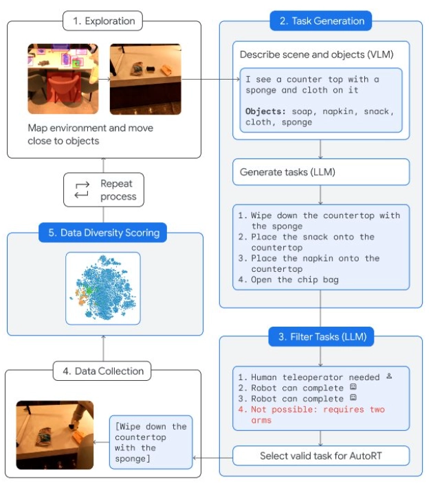 Figure 6. AutoRT’s 5-step robot episode data collection process. Source: https://auto-rt.github.io